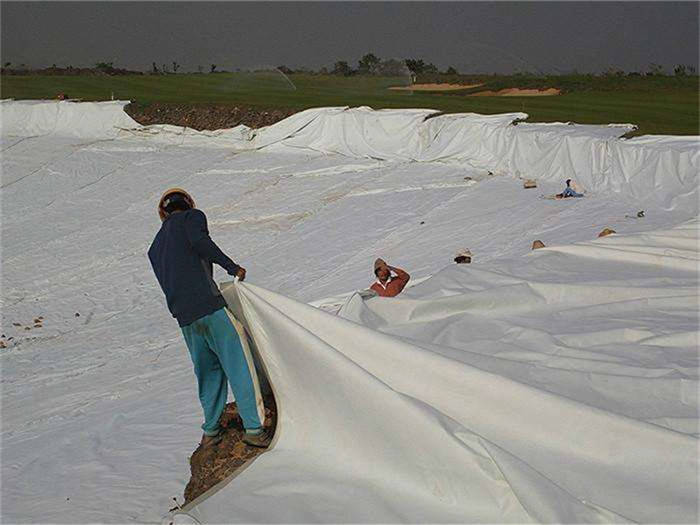 土工布的运用:路面(包括临时道路)铁路线、堤坡、土石坝、机场、运动场地等工程项目中,用来增强地基加固,与此同时起隔离开和过滤的功能。江、河、湖、海边的岸坡置土工合成材料,还能够避免流水冲浊。