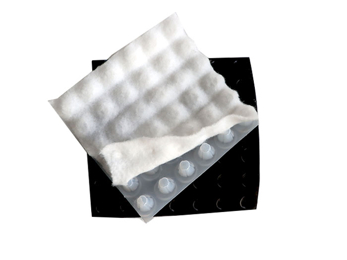 排水板与多孔渗水管组成一个有效的疏排水系统,圆柱形的多孔排水板与土工布也组成了一个排水系统,从而形成一个具有渗水、储水和排水功能的系统。而且排水板还解决了传统造景方式(如采用鹅卵石、贝壳、陶粒等作为滤水材料)不能储水、不能防止植物根系破坏表面、不能保温隔热、荷载大等缺点。