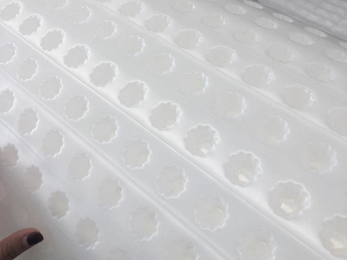排水板分卷材片材二个系列其中卷材又分“热熔”和“搭接”和“自粘”三个类型,造型上采用特殊工艺将塑料板材压出封闭凸起的柱状壳体,形成凹凸状膜,壳连续,具有立体空间和一定支撑高度,边沿加工生产时热粘上丁基橡胶条,壳顶部覆盖土工布过滤层,用于渗水、疏水、排水和蓄水的产品。又称为:自粘PE排水板,排疏板、排水保护板、滤水板、塑料凹凸排水板。