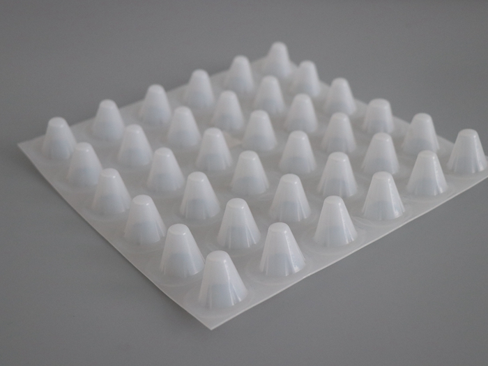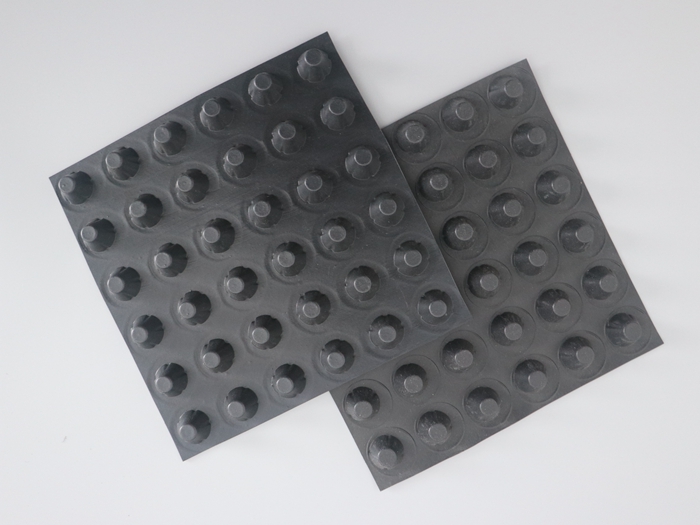 采用挤出吸附等特殊工艺压型成封闭突起的柱状、半锥状壳体,形成一种膜、壳连续,具有立体空间和一定支撑刚度,液体和气体可以在其内流动排泄的板材。是一种潜在功能很多的功能性材料,使用中很方便地构筑出架空层,形成排水、排气通道,达到隔音、隔振的功能。在土木建筑工程领域中可广泛用于建筑屋面系统的层内架空、种植屋面的排水透气,建筑地下室防水系统的排水保护,室内地面的防潮隔热保护,公路铁路隧道的排水保护等。在城市土地、空间、材料资源日益珍贵的今天,塑料排水板提供更有价值的选择。